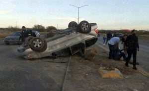 Una persona resultó lesionada tras chocar y volcar la unidad en la que viajaba, sobre el bulevar Municipio Libre en Nuevo Laredo.