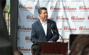 El Gobernador Francisco García Cabeza de Vaca y el Administrador de la Ciudad de Donna, Carlos Llerena, en representación del mayor Rick Morales, anunciaron desde el Puente Internacional Río Bravo-Donna, una nueva campaña de vacunación transfronteriza dirigida a trabajadores esenciales y de la industria maquiladora de Tamaulipas.