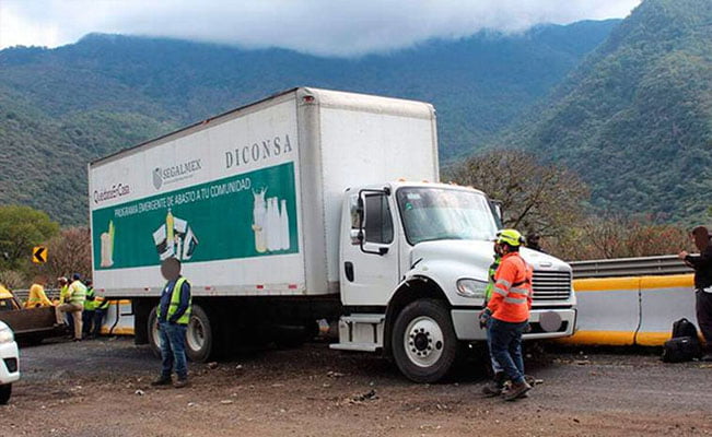 El chofer de la unidad rotulada con las leyendas SEGALMEX-DICONSA, aparentemente perdió el control y se estrelló contra el muro de división a la altura del kilómetro 64.