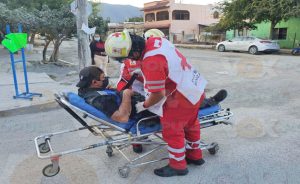En cuestión de minutos acudieron los paramédicos de la Cruz Roja para atender a un empleado de la empresa Domino’s Pizza , confirmando que sufría una aparente fractura, por lo cual procedieron a inmovilizarlo y trasladarlo al Instituto Mexicano del Seguro Social (IMSS), para que recibiera una mejor atención por parte de especialistas y descartar heridas internas graves.