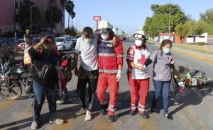 Ante tal reporte se hicieron presentes dos unidades con paramédicos de la Cruz Roja, quienes procedieron a prestar los primeros auxilios a los heridos, encontrando por fortuna a ambos ya conscientes, por lo que los apoyaron para levantarse y subieran a las ambulancias para una mejor valoración.