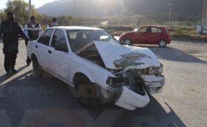 Según el reporte, éste se encontraba bajo los influjos del alcohol, ya que él mismo aceptó que se encontraba “pedo” y circulaba de norte a sur por el libramiento, pero justo al llegar al cruce con la calle Matamoros intenta virar a su extrema izquierda, y omite su alto correspondiente, cerrándole el paso a un automóvil Nissan tipo Tsuru.