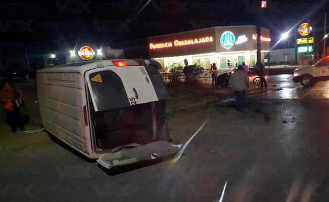 Por una supuesta falla en los frenos de una camioneta, se registró un choque-volcadura en las calles del fraccionamiento Los Fresnos, donde 3 personas resultaron lesionadas.