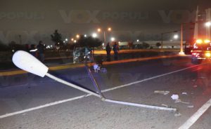 Justo al llegar al bulevar, el hombre se pasa derecho hasta brincar el camellón y estamparse contra la base de una luminaria que derribó totalmente.