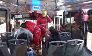Tras el llamado de emergencia, llegaron de inmediato paramédicos de la Cruz Roja y al mismo tiempo, varias unidades con agentes viales, quienes apoyaron poniendo orden el tráfico, mientras los socorristas valoraban a seis personas que viajaban en la unidad transporte público.