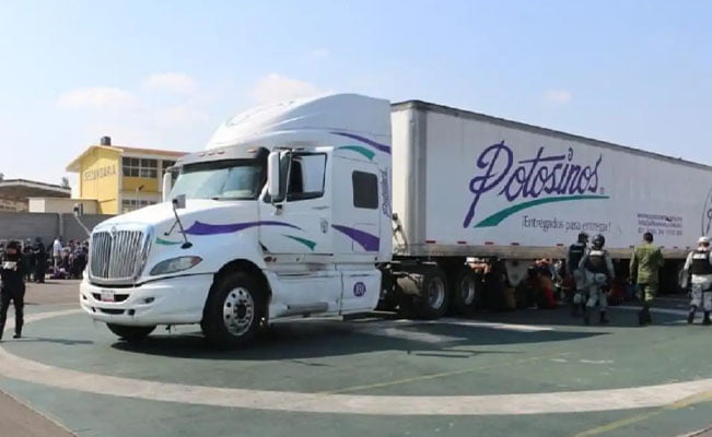 Los policías estatales detectaron un vehículo tipo tráiler perteneciente a la empresa con razón social “Potosino”, placas 58DN7W, el cual contaba con reporte de robo, mismo que iba custodiado por dos camionetas con personas armadas, por lo cual le dieron seguimiento.