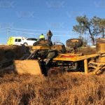 Por falta de precaución al conducir, un hombre chocó su camioneta contra la parte trasera de una pesada maquinaria, dejando como saldo a 2 personas lesionadas y daños por varios miles de pesos.