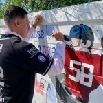 Asistió el lanzador Ricardo Chapa y el coach Marco Cruz, quienes son parte de este reconocimiento y quedaron plasmados en las bardas de dicho centro educativo.