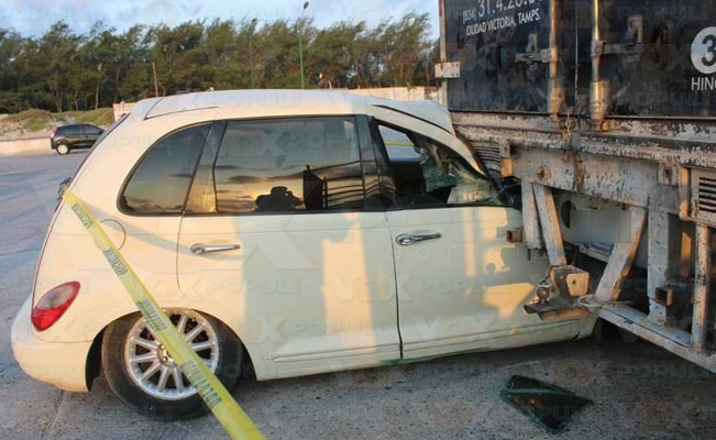 Al parecer, 3 personas se salvaron de perder la vida al protagonizar un accidente en el que la unidad en la que viajaban quedó prácticamente incrustada debajo de un camión de grandes dimensiones, en la playa Miramar, de ciudad Madero.