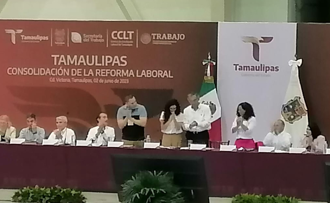 El Gobernador, Américo Villarreal Anaya, junto con la Secretaria del Trabajo Federal, Luisa María Alcalde Luján, encabezaron este viernes el evento para la consolidación de la Reforma Laboral en Tamaulipas realizado en el Polyforum de esta capital.