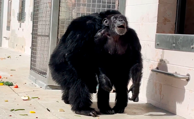 El video de Vanilla se ha convertido en un fenómeno viral en las redes sociales. En él, la chimpancé enfrenta con temor y asombro su primer día al aire libre. Pegada a la puerta y temerosa de salir, el alfa del grupo, Dwight, tiene que animarla para que dé el primer paso hacia su nueva vida.