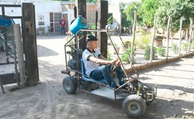 Inspirado por imágenes y videos que encontró en Facebook y YouTube, Rosvel, con la ayuda de su padre, empezó a dar forma a su proyecto. “Yo estaba en Facebook y me salían fotos de carritos, o en YouTube. Entonces, pensé que podía hacer uno, así que con los materiales que tenía en mi casa lo formé. Tenía una cuatrimoto pequeña y las herramientas para poder hacerlo”, dijo el estudiante.