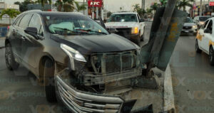 Un joven conductor de una lujosa camioneta sufrió un accidente al perder el control de su vehículo y chocar contra un poste del alumbrado público, que estuvo a punto de caerse. El accidente ocurrió en la tarde-noche de este miércoles sobre la prolongación de la Avenida Hidalgo, cerca del cruce con la calle Marqués de Guadalupe, en la zona dorada de Tampico.
