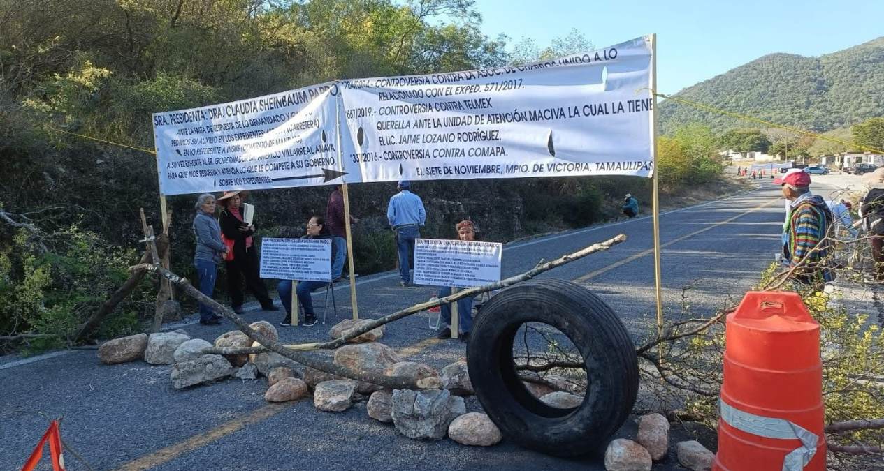 Ejidatarios del 7 de noviembre cerraron este viernes en la mañana el paso en la antigua carretera a Tula, a la altura de la colonia San Marcos. Los ejidatarios que cierran la carretera en Tamaulipas exigen la indemnización de terrenos que, aseguran, les fueron arrebatados sin compensación. A pesar de contar con resoluciones legales a su favor.