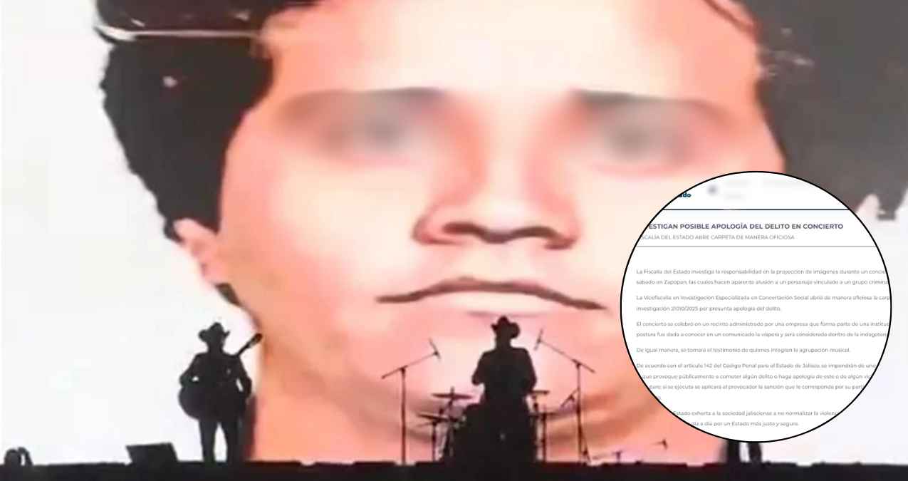 La Fiscalía del Estado de Jalisco ha iniciado una investigación tras la proyección de imágenes de Nemesio Oseguera Cervantes, alias ‘El Mencho’, líder del Cártel Jalisco Nueva Generación, durante un concierto realizado este sábado en el Auditorio Telmex. El grupo musical Los Alegres del Barranco proyectó las imágenes.