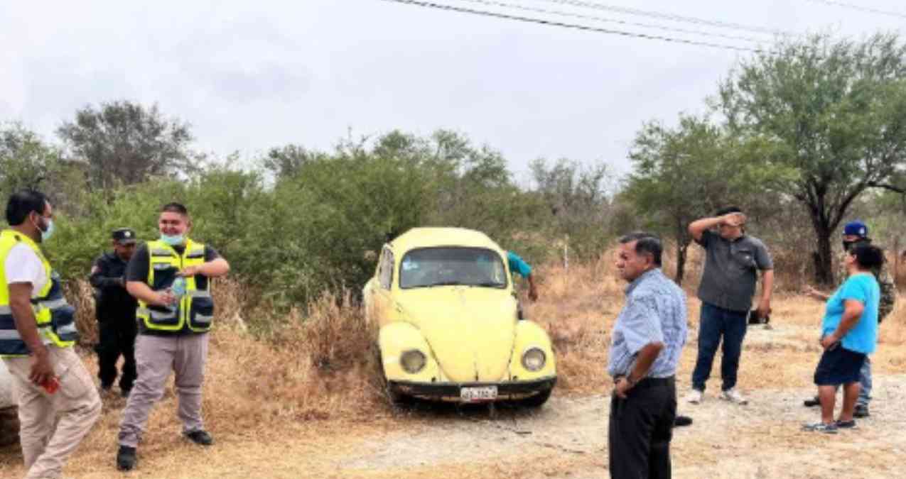 El vehículo, un Volkswagen tipo Sedán color amarillo con placas WXP-334-D del estado de Tamaulipas, terminó volcándose y finalmente quedó en posición normal.