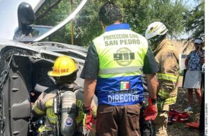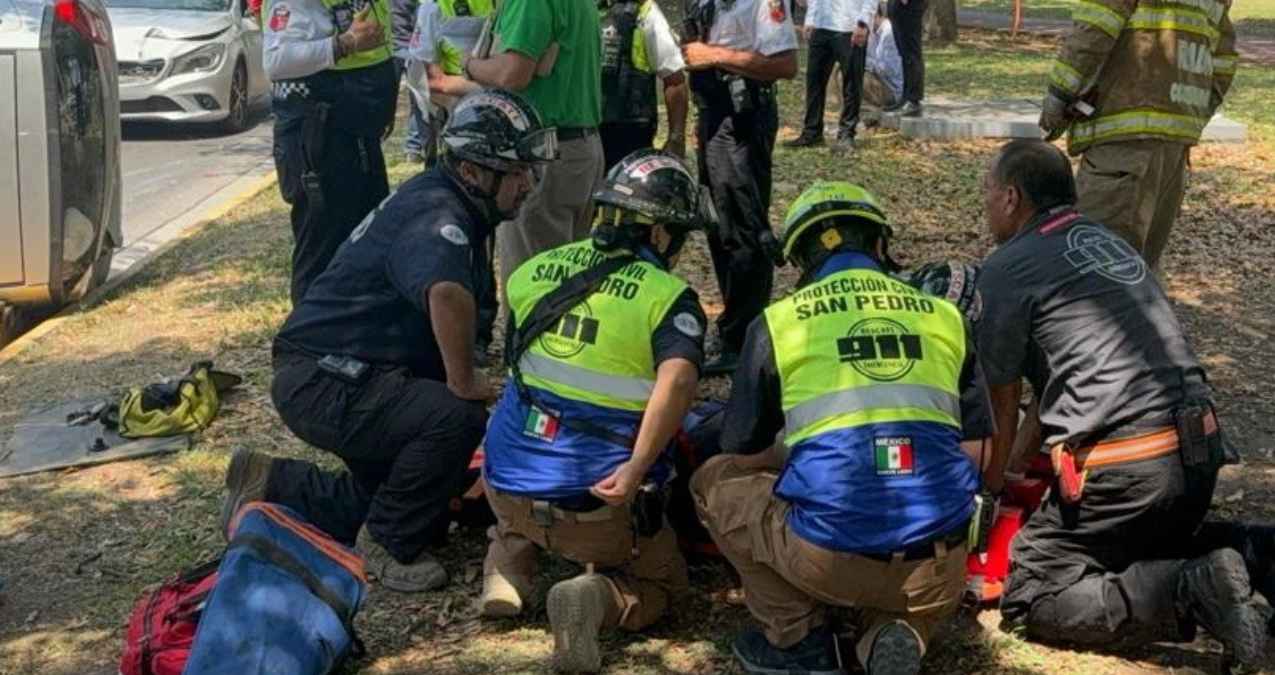 Un fuerte accidente en Calzada del Valle, en San Pedro Garza García, movilizó a los cuerpos de rescate este miércoles por la mañana, luego de que una mujer quedara atrapada tras una volcadura provocada por un choque entre tres vehículos.
