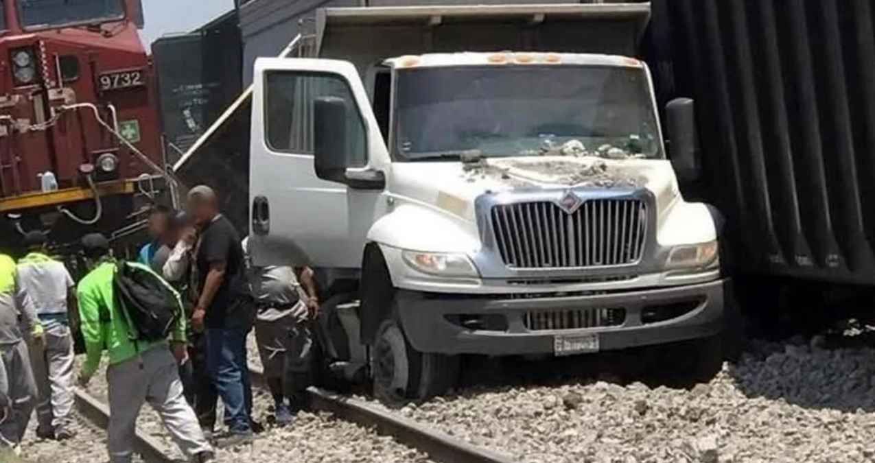 El percance ocurrió poco después del mediodía. En el cruce de la Vía a Laredo y la avenida Fidel Velázquez, cerca de las instalaciones de SIMEPRODE. Según los primeros reportes, el tren impactó al camión de volteo, dejando al conductor herido.