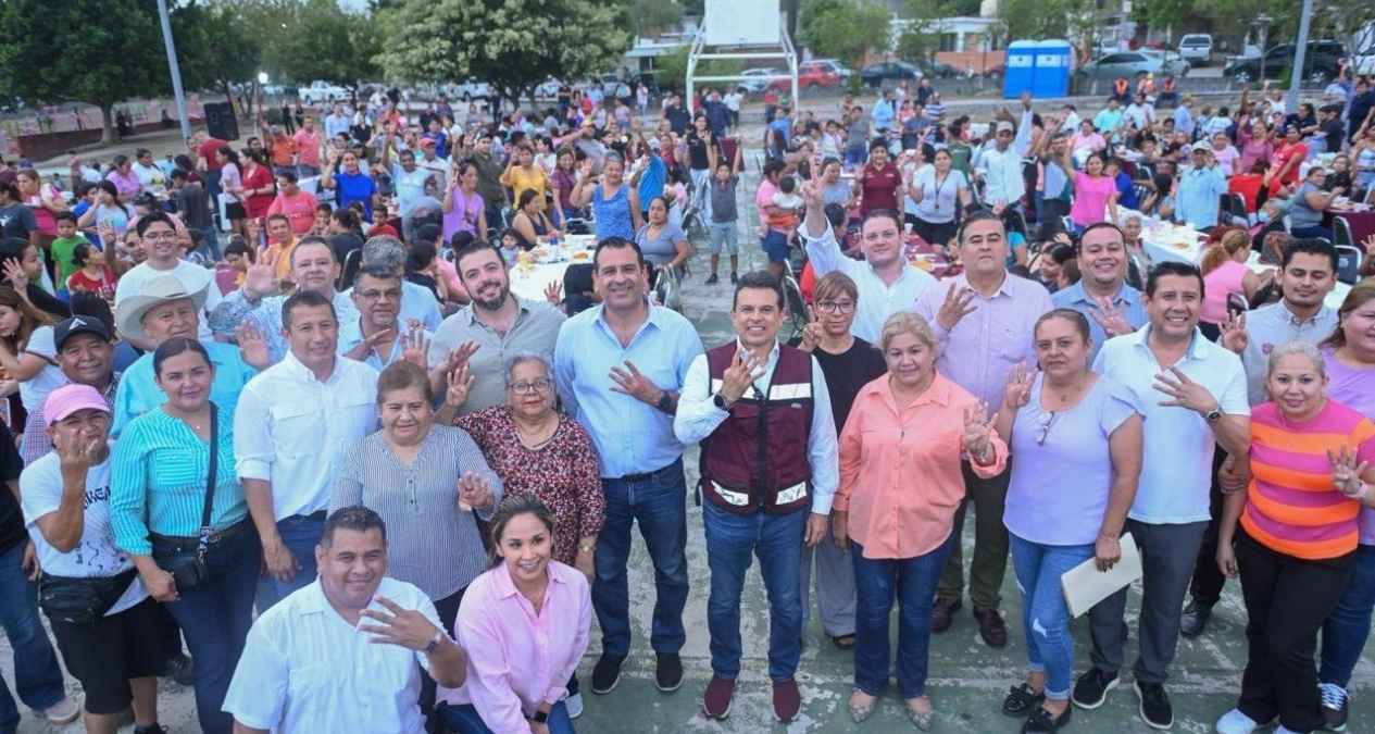 Acompañado de integrantes del Gabinete y Cabildo Municipal. Arribó al área deportiva del sector, donde fue recibido por más de 400 mujeres, jefes de familia, jóvenes y niños. Con los que compartió bocadillos, bebidas de sabor, helados, juego de lotería, la rifa de tinacos y atención personalizada, en la mesa de audiencia pública. Donde ofreció la atención de programas sociales en Ciudad Victoria.