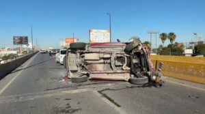 La mañana de este lunes se registró un accidente vial en el Puente Broncos, en Reynosa, donde una camioneta tipo Jeep Liberty volcó cuando circulaba de poniente a oriente.