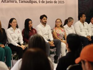 Acompañaron al secretario en esta jornada de impulso al empleo: Carolina Iveth Martínez Molano, subsecretaria de Empleo y Previsión Social; Rosa Irma Luque, presidenta del Sistema DIF Altamira; Marcia Benavides Villafranca, directora general del Instituto de la Mujer Tamaulipas y Mariana Álvarez Quero, subsecretaria para la Pequeña y Mediana Empresa.
