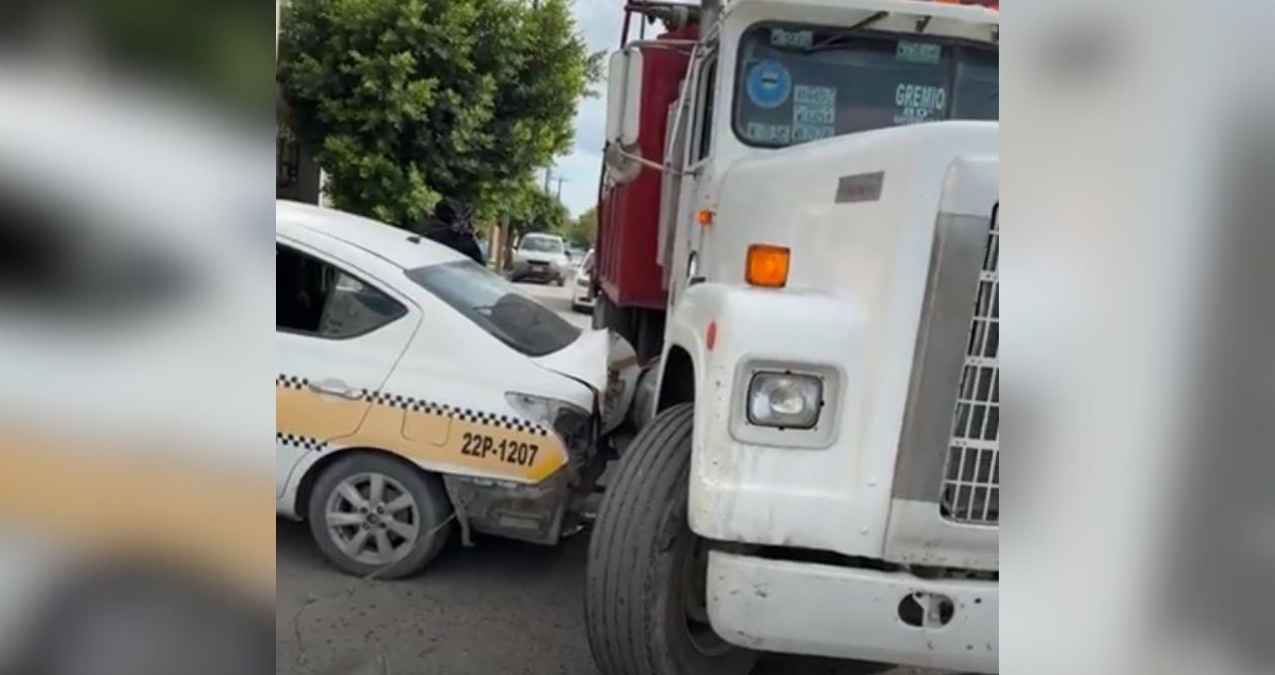 Un percance entre un camión de carga pesada tipo volteo y un taxi del sector Constituyentes dejó severos daños materiales y una persona lesionada en el Municipio de Matamoros, Tamaulipas.