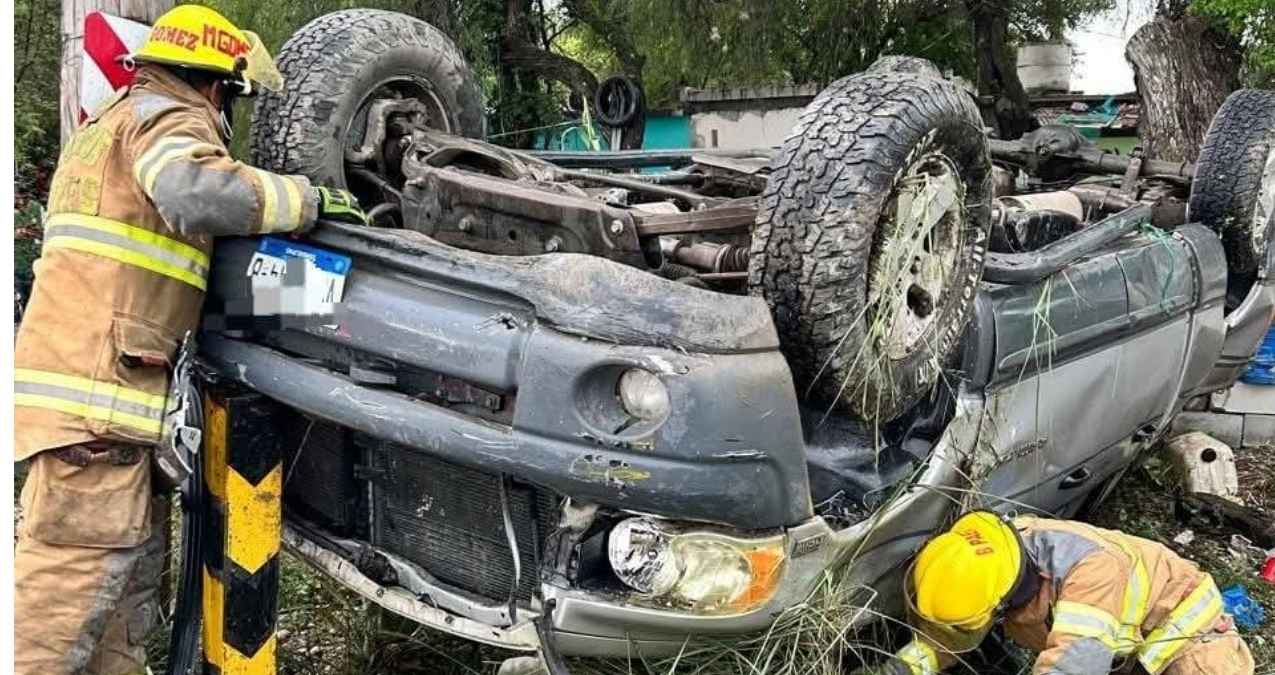 El aparatoso percance se suscitó en dirección de Hualahuises hacia el Municipio de Linares, justo antes de la conocida curva del Tío Pancho.