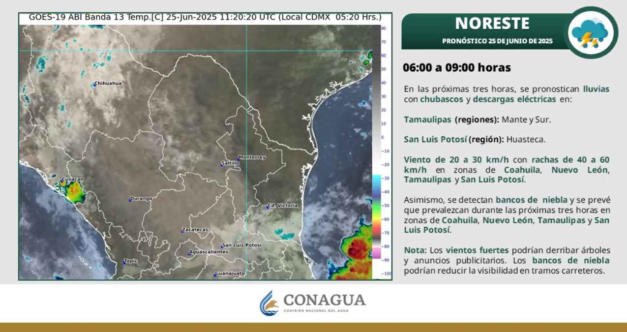 ¿Cómo afectarán las lluvias a Tamaulipas si persisten las altas temperaturas? Este miércoles, el Servicio Meteorológico Nacional informó que se esperan chubascos con lluvias fuertes, con acumulaciones de entre 25 a 50 milímetros, en Tamaulipas, San Luis Potosí, Zacatecas, Colima, Morelos, Ciudad de México, Estado de México, Querétaro, Hidalgo y Tlaxcala.
