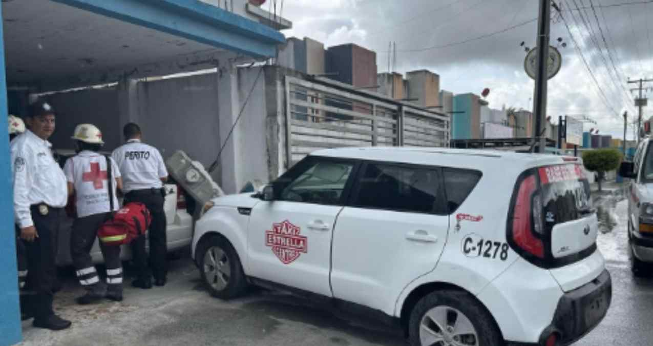 El incidente ocurrió en la Avenida México del fraccionamiento Misiones II. El chofer, identificado como César Castillo Ortiz, manejaba un taxi de la Base Estrella con número económico C-1278.