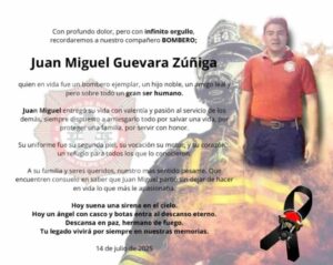 “Quien en vida fue un bombero ejemplar, un hijo noble, un amigo leal y pero sobre todo un gran ser humano. Juan Miguel entregó su vida con valentía y pasión al servicio de los demás”.