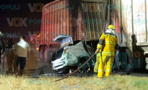 La imprudencia de un operador de tráiler provocó un choque mortal en el kilómetro 15 de la carretera Victoria–Matamoros. El conductor no respetó una señal de alto al tomar un retorno, lo que ocasionó una colisión que terminó con un vehículo en llamas y una persona calcinada.