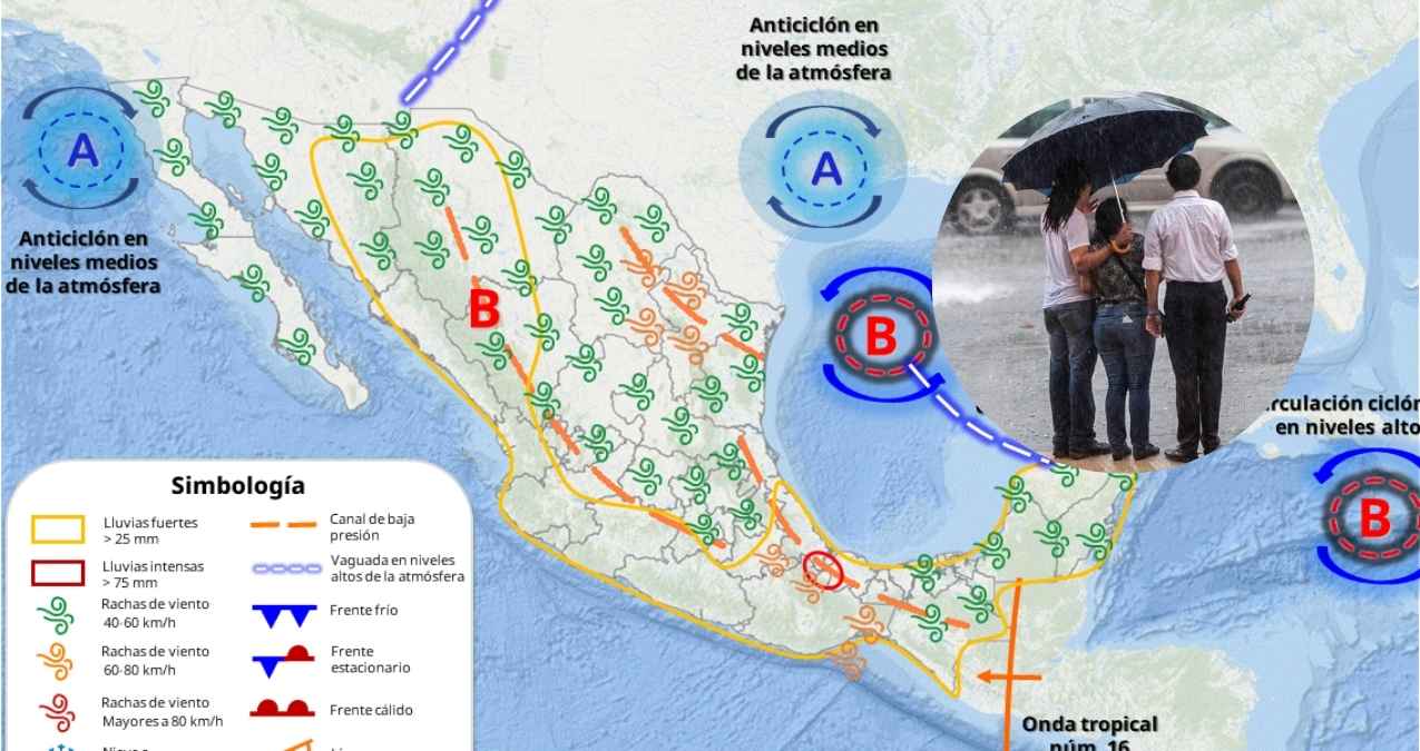 El escenario climático será resultado de varios sistemas, como el monzón mexicano, un canal de baja presión y la inestabilidad atmosférica que se moverá sobre el territorio nacional. Además, se mantiene bajo vigilancia una zona de baja presión frente a las costas de Guerrero, con potencial ciclónico en el Océano Pacífico.