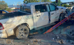 Testigos del accidente llamaron al 911 al ver lo aparatoso del choque entre ambas camionetas. Aunque no se reportaron personas lesionadas, la vialidad quedó obstruida por varios minutos.