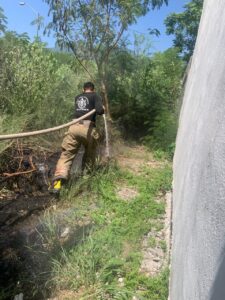 Elementos de la Unidad 29 del Cuerpo de Bomberos de Victoria acudieron al Fraccionamiento Las Cumbres tras recibir el reporte de un incendio en un lote baldío.