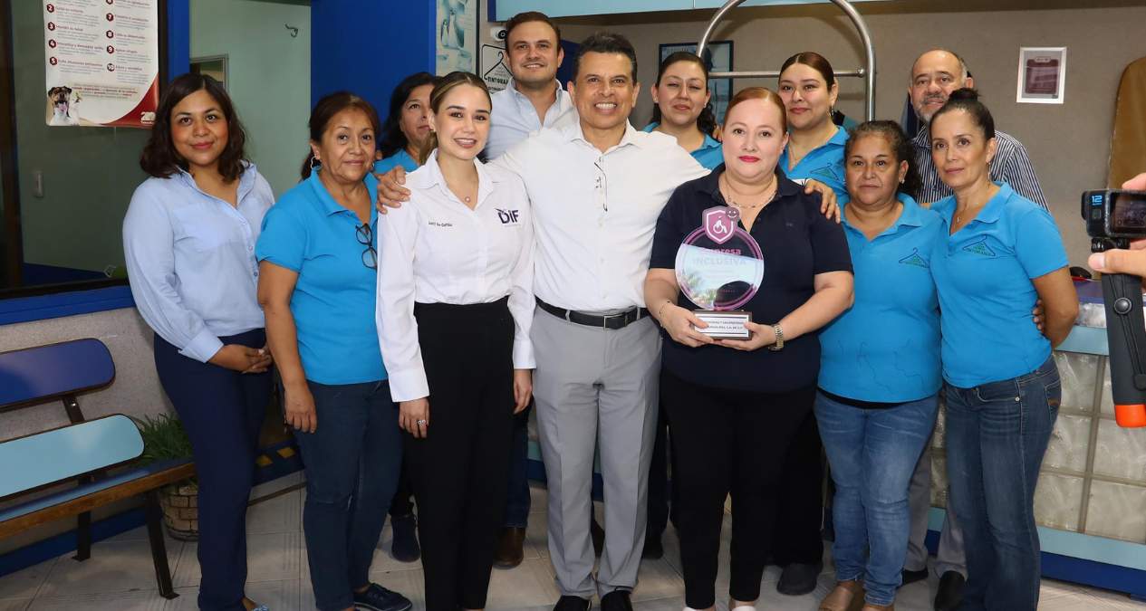 Por promover políticas de igualdad en el ámbito laboral, la presidenta del Sistema DIF Victoria, Lucy de Gattás, y el presidente municipal de Victoria, Eduardo Gattás Báez, entregaron reconocimiento como Empresa Inclusiva en Victoria al consorcio Tintorama.