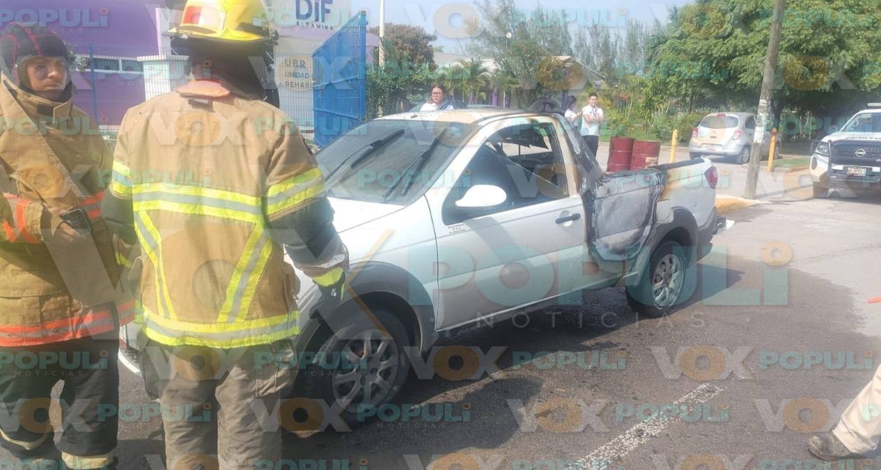 En cuestión de segundos, comenzó el incendio de camioneta en Altamira la tarde del martes mientras circulaba por el Bulevar Cuco Sánchez, justo frente a la palapa de Champayán, en el centro de la ciudad.