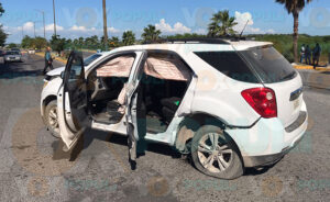 Tras el impacto, la camioneta dio un medio giro y ambas unidades quedaron en medio de la vialidad, con severos daños en la carrocería.