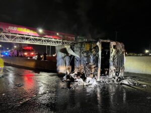 Los primeros reportes indican que el conductor —cuyo nombre aún se desconoce— circulaba de norte a sur y chocó contra el muro divisorio de concreto. La unidad, perteneciente a la empresa transportista TyL, se incendió de inmediato después de volcarse, lo que impidió que el conductor pudiera salir del vehículo.