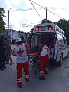 Paramédicos de la Cruz Roja acudieron al lugar y tras brindarle los primeros auxilios a la mujer, decidieron trasladarla a un hospital para una revisión más detallada y descartar lesiones internas.