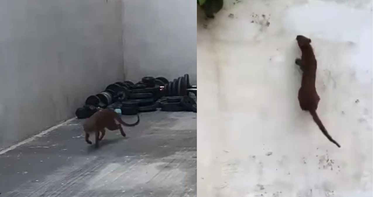 En un video que circula en redes se observa cómo el felino intenta huir dando enormes saltos sobre la barda sin éxito, hasta que logra salir por una puerta que estaba abierta. Donde aún se aprecia que la calle frente a la casa sigue parcialmente inundada.