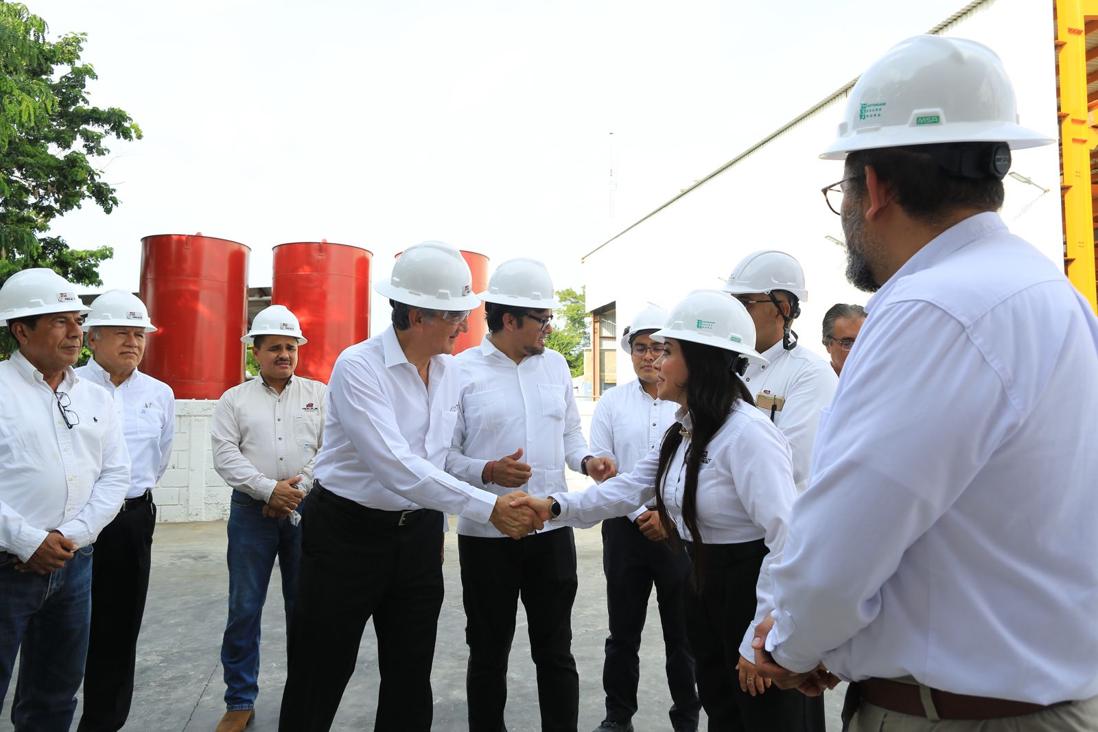 El Gobernador Américo Villarreal Anaya efectuó un recorrido por las instalaciones de la planta de la empresa Green Bauen, filial del Grupo Industrial Águila en el Municipio de Altamira, en la cual se procesan desechos plásticos permitiendo la generación de queroseno, parafinas, gasolina y diesel, utilizando tecnología cien por ciento tamaulipeca.