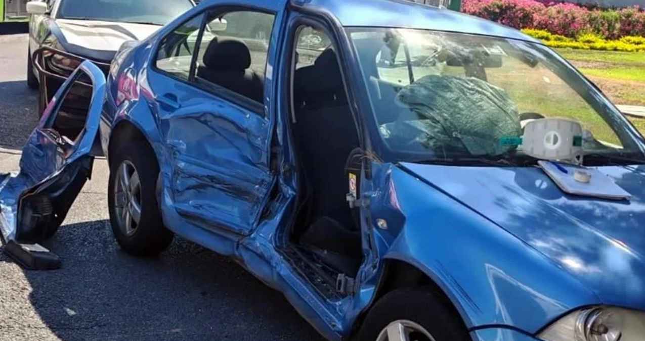 El accidente se registró en el cruce de la Avenida Vasconcelos y Calzada San Pedro, en el Sector Fátima, alrededor de las 9:30 horas. Ahí, un Volkswagen Jetta azul fue impactado por una camioneta Nissan XTrail y salió proyectado contra un poste, quedando en medio de los carriles de circulación.