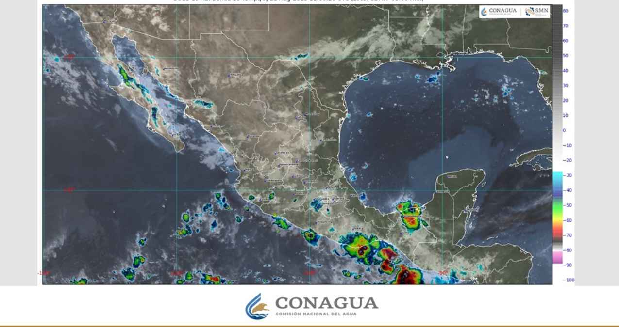 El monzón mexicano continuará generando lluvias fuertes a puntuales muy fuertes en Nayarit y Sinaloa, con lluvias puntuales fuertes en Durango, Chihuahua y Sonora, y chubascos en Baja California Sur.