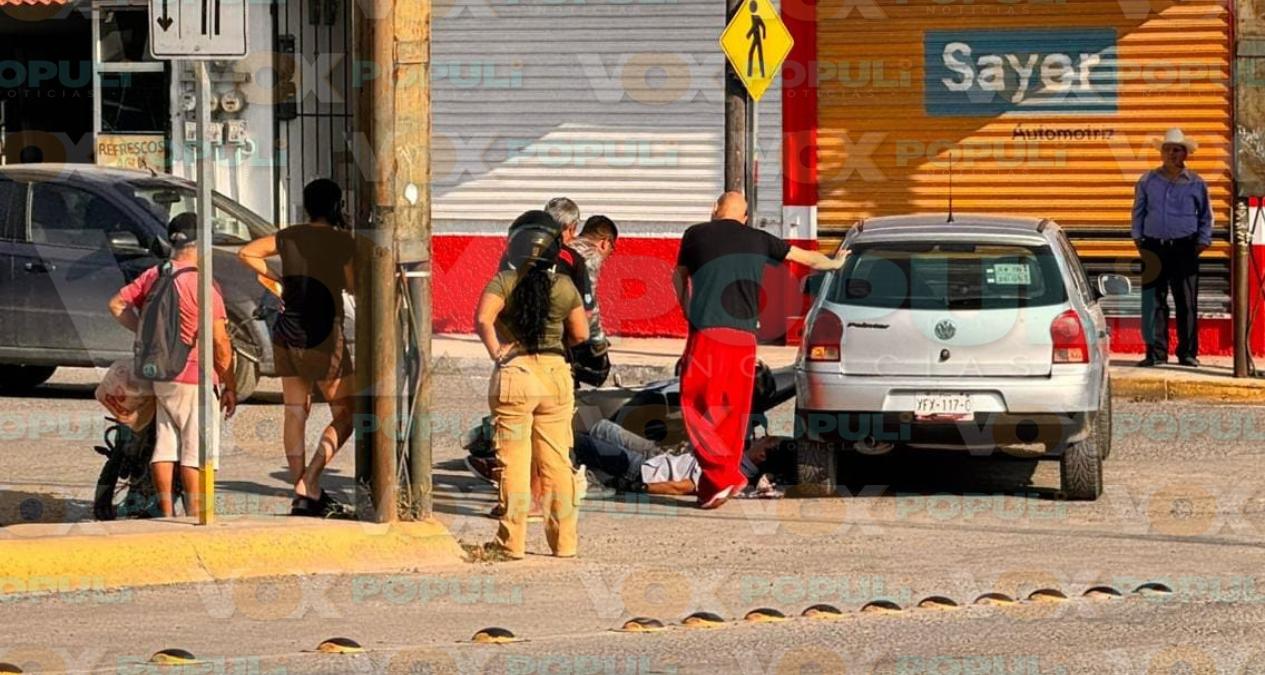 El percance ocurrió en el cruce de Privada Enrique Cárdenas con Benito Juárez, en la colonia Héroe de Nacozari, justo en una de las salidas de Grand Estación. Al ver al motociclista lesionado y la circulación detenida, testigos llamaron al 911 para pedir ayuda.