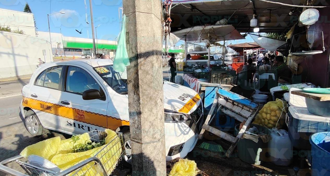 Después del golpe, el taxista perdió el control y se proyectó contra el negocio de tortas “Manuel”. Por fortuna, en la trayectoria no había peatones, por lo que solo hubo un gran susto para el encargado del local.