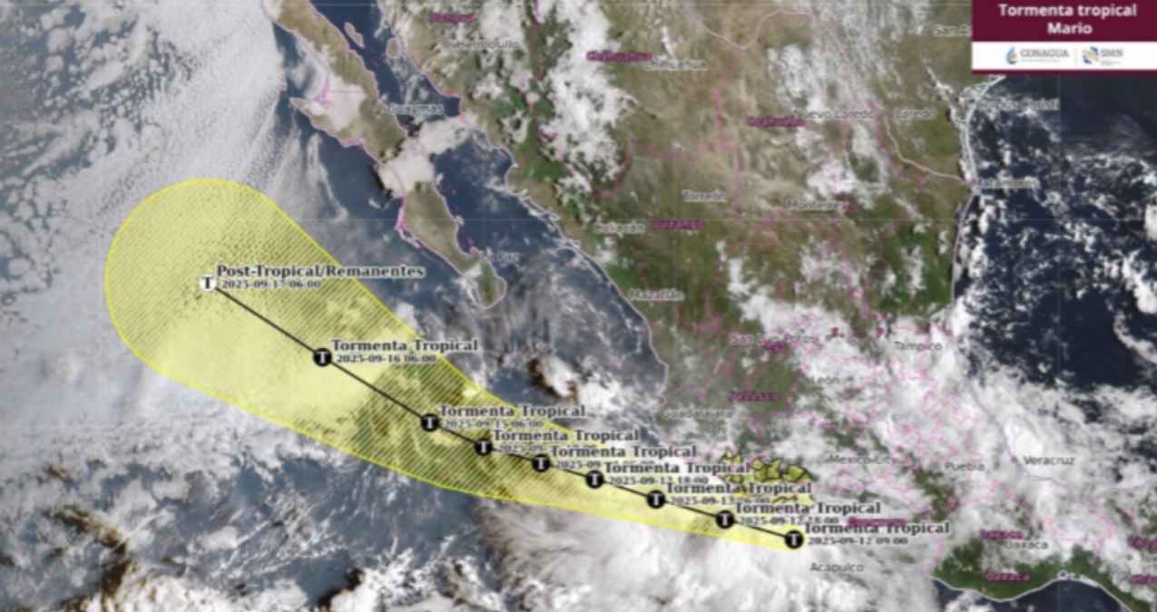 Este viernes 12 de septiembre se formó la Tormenta tropical Mario en el —océano— Pacífico y dejará afectaciones en algunos estados del país.