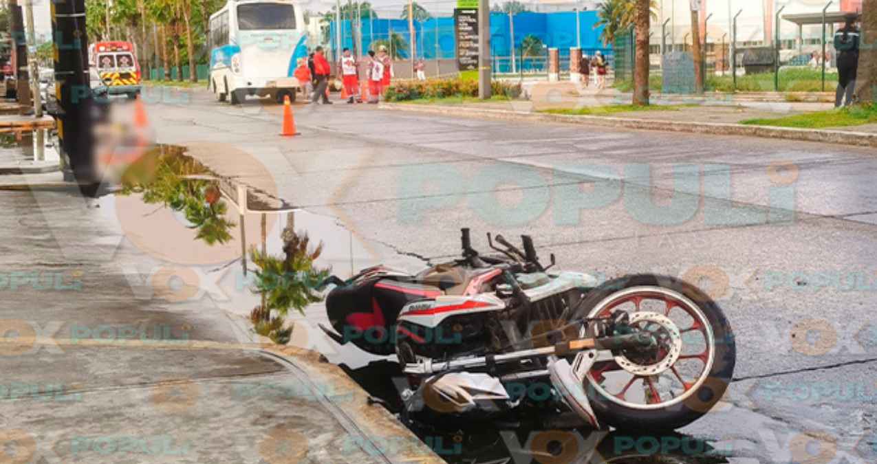 El operador del autobús intentó advertir al motociclista, quien circulaba en aparente estado —inconveniente— con las luces encendidas, pero no pudo evitar el impacto.
