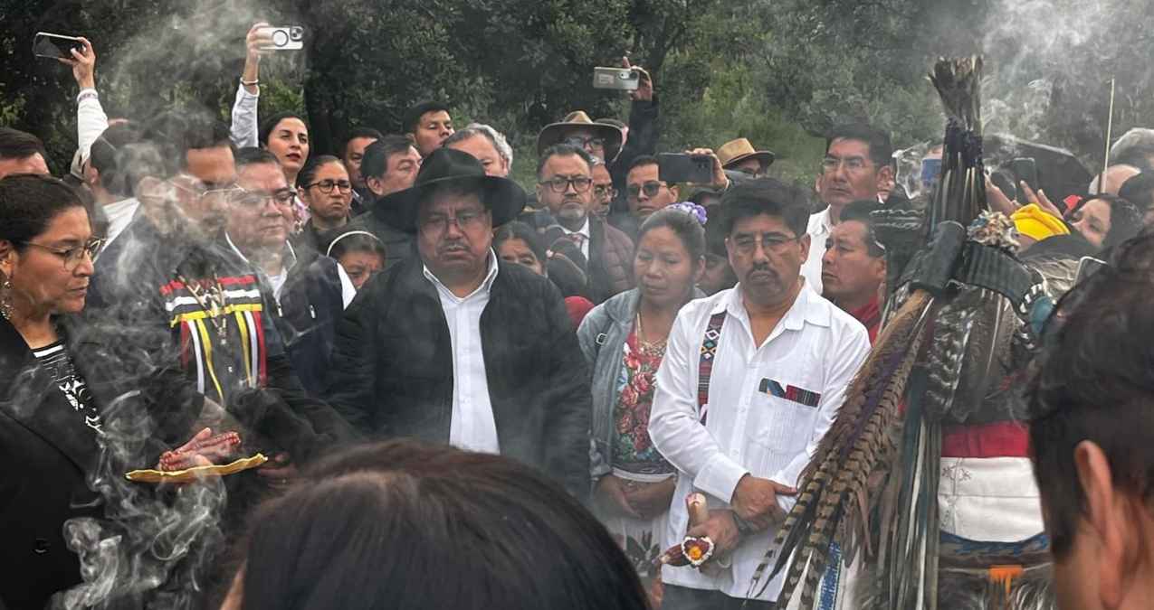 Durante la ceremonia de consagración de los bastones de mando en la zona arqueológica de Cuicuilco, Aguilar se dirigió a representantes de comunidades indígenas y destacó que se busca un cambio profundo en la institución.