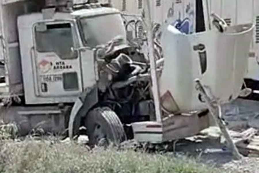Pese a la fuerza del choque, los tripulantes salieron ilesos y solo se reportaron daños materiales tanto en el vehículo como en la carga.