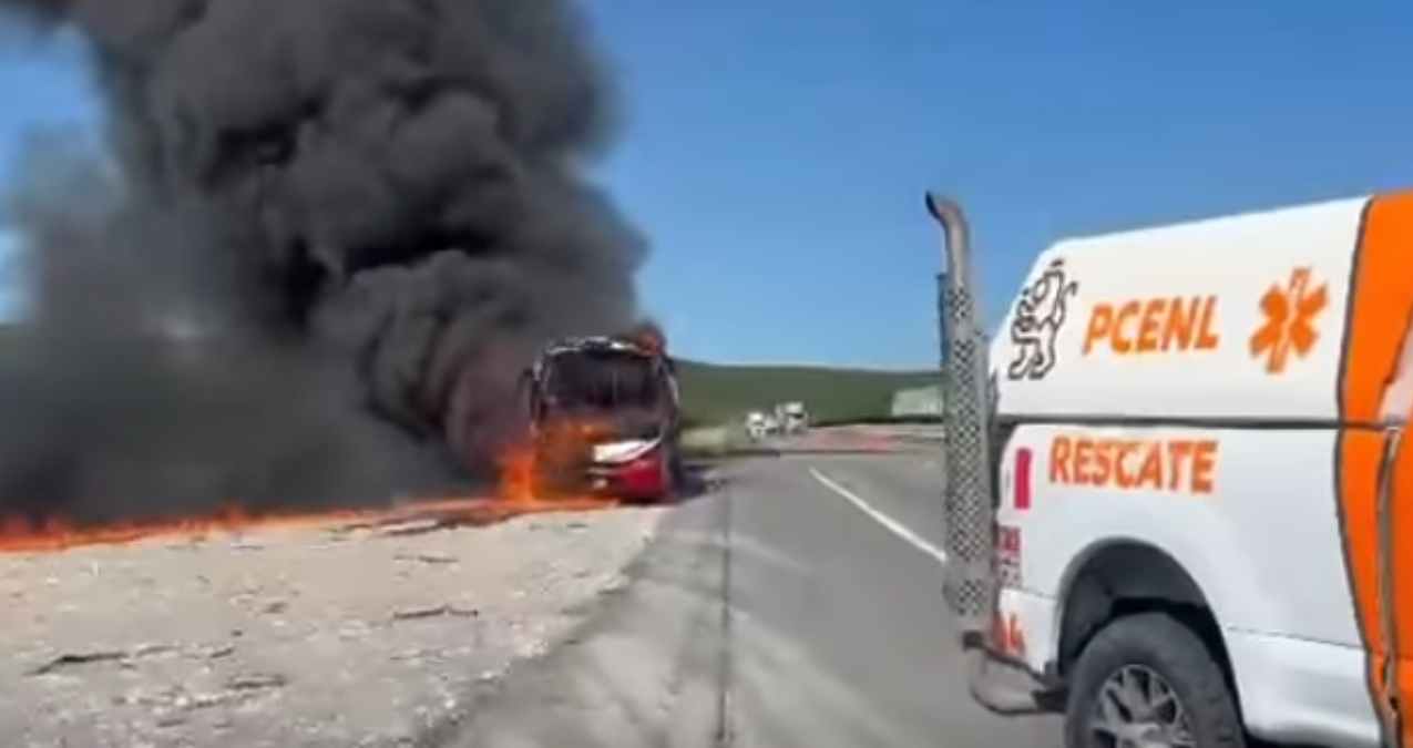 Autobús se incendia en Salinas Victoria; pasajeros logran salir a salvo